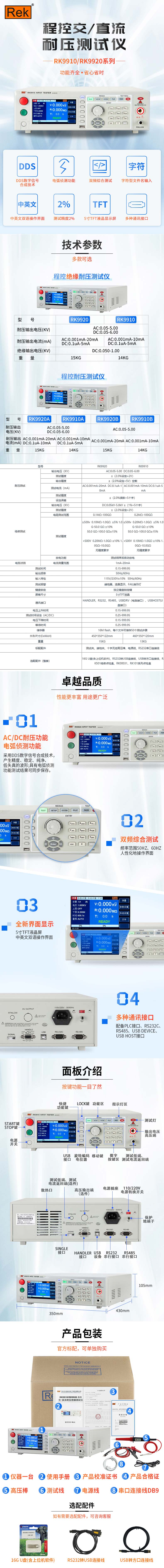 本系列程控耐压测试仪是采用高速MCU和大规模数字电路设计的高性能的安规测试仪,其输出电压的大小,输出电压的上升、下降。输出电压的频率安全由MCU控制,能实时显示击穿电流和电压值,并具有软件校准功能,配备PLC接口、RS232C、RS485、USB device、USB Host接口,可方便与计算机或PLC组成综合测试系统。能够快速、准确地对家用电器、仪器仪表、照明电器、电动电热器具、计算机、信息类整机进行安规综合测量。